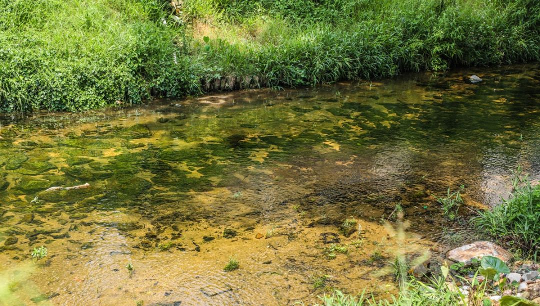 清澈干凈的流水輕撫過岸底巖石