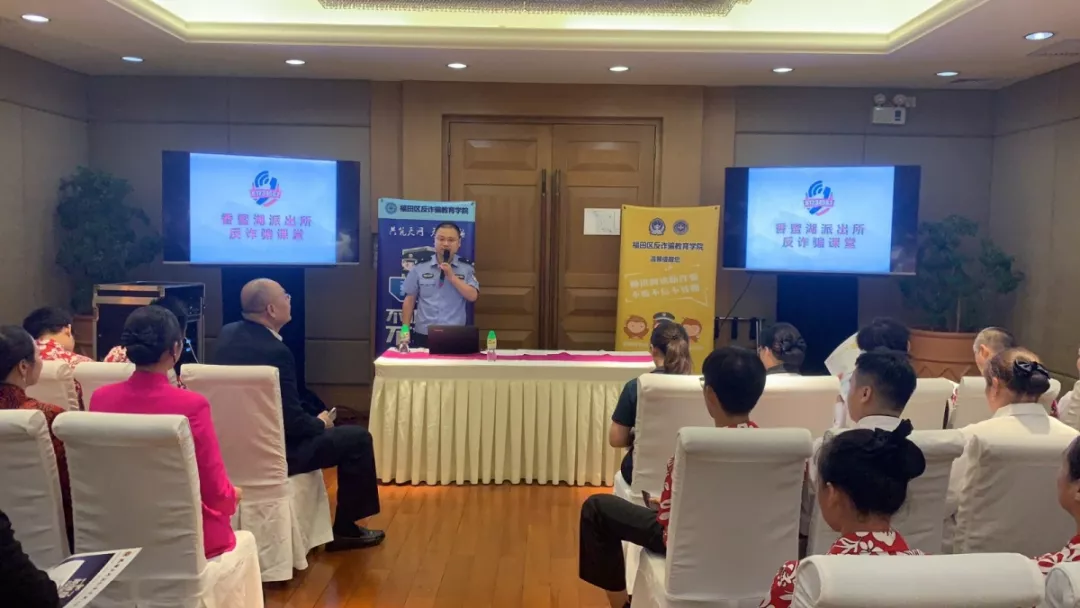 同時,第37場反詐騙教育學院公開課在香蜜湖派出所轄區(qū)丹桂軒開展。此次課程主要針對餐廳服務人員進行。根據服務人員工作時間長,平時休閑娛樂活動單一的特點,反詐講師特別著重講解“終結詐騙”小程序游戲的玩法,希望餐飲從業(yè)人員休息時多學習反詐知識,從而達到反詐目的。