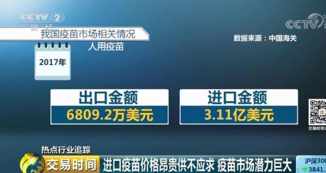 據(jù)中國(guó)海關(guān)的數(shù)據(jù)顯示,2018年國(guó)內(nèi)疫苗企業(yè)中只有遼寧成大、北京科興、華蘭生物等11家企業(yè)有疫苗出口,總計(jì)出口額為7600萬(wàn)美元。2017年,人用疫苗出口額6809.2萬(wàn)美元,但進(jìn)口金額達(dá)到3.11億美元。