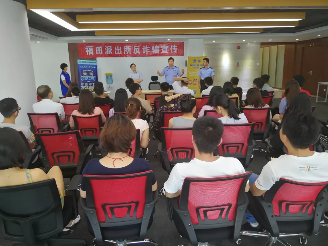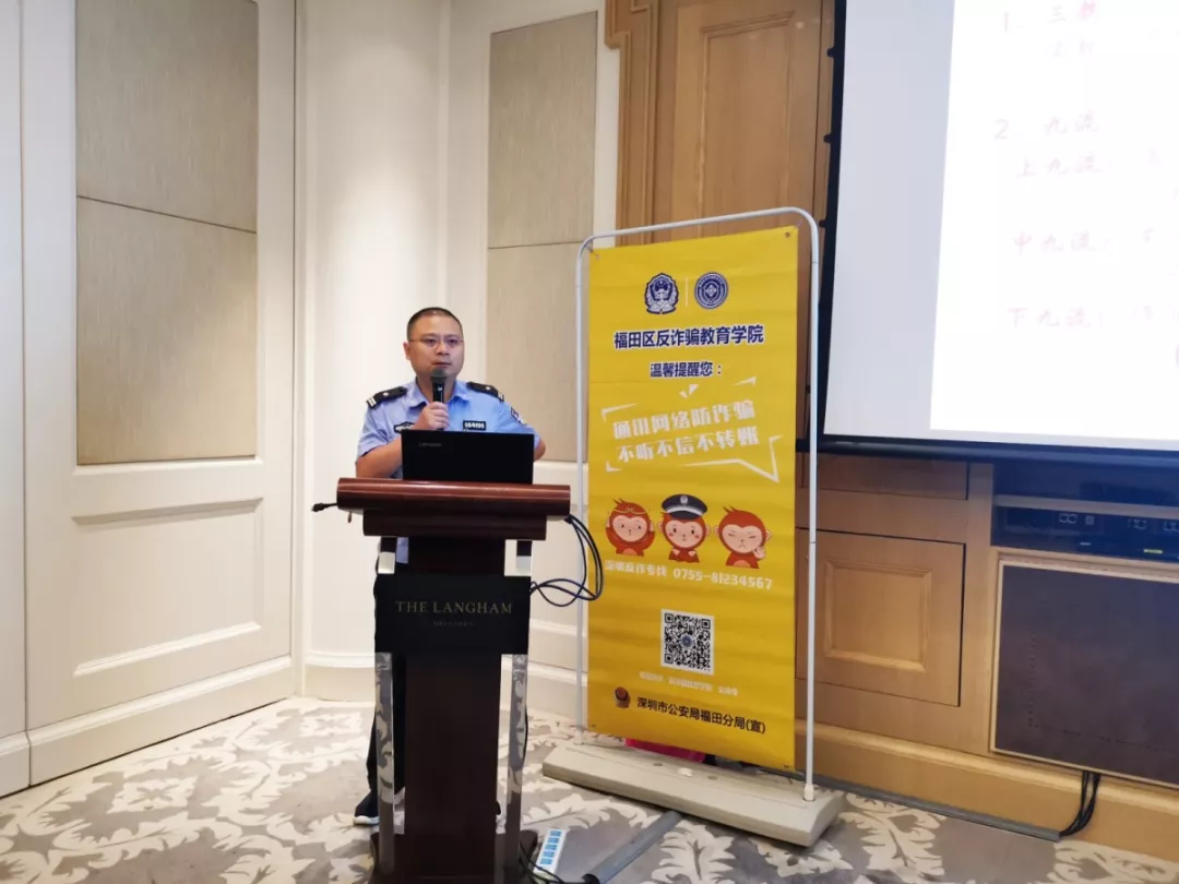 8月12日,福田區(qū)反詐騙教育學(xué)院系列第48場(chǎng)公開課走進(jìn)香蜜湖派出所轄區(qū)東海朗庭酒店,第37場(chǎng)宣傳活動(dòng)走進(jìn)福田派出所轄區(qū)翰森大廈。(兩次活動(dòng)覆蓋附近商戶及企業(yè)員工近300人。累計(jì)目前為止,共走進(jìn)6234家企業(yè)及商戶。)