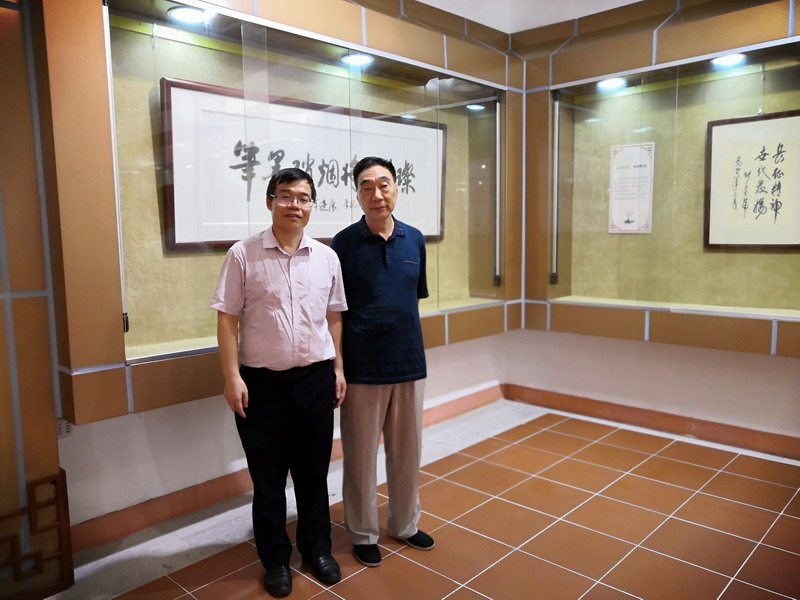▲ 深圳報(bào)業(yè)集團(tuán)駐穗記者劉良龍和軍旅作家吳東峰(右)在開(kāi)國(guó)將軍手跡展現(xiàn)場(chǎng)。