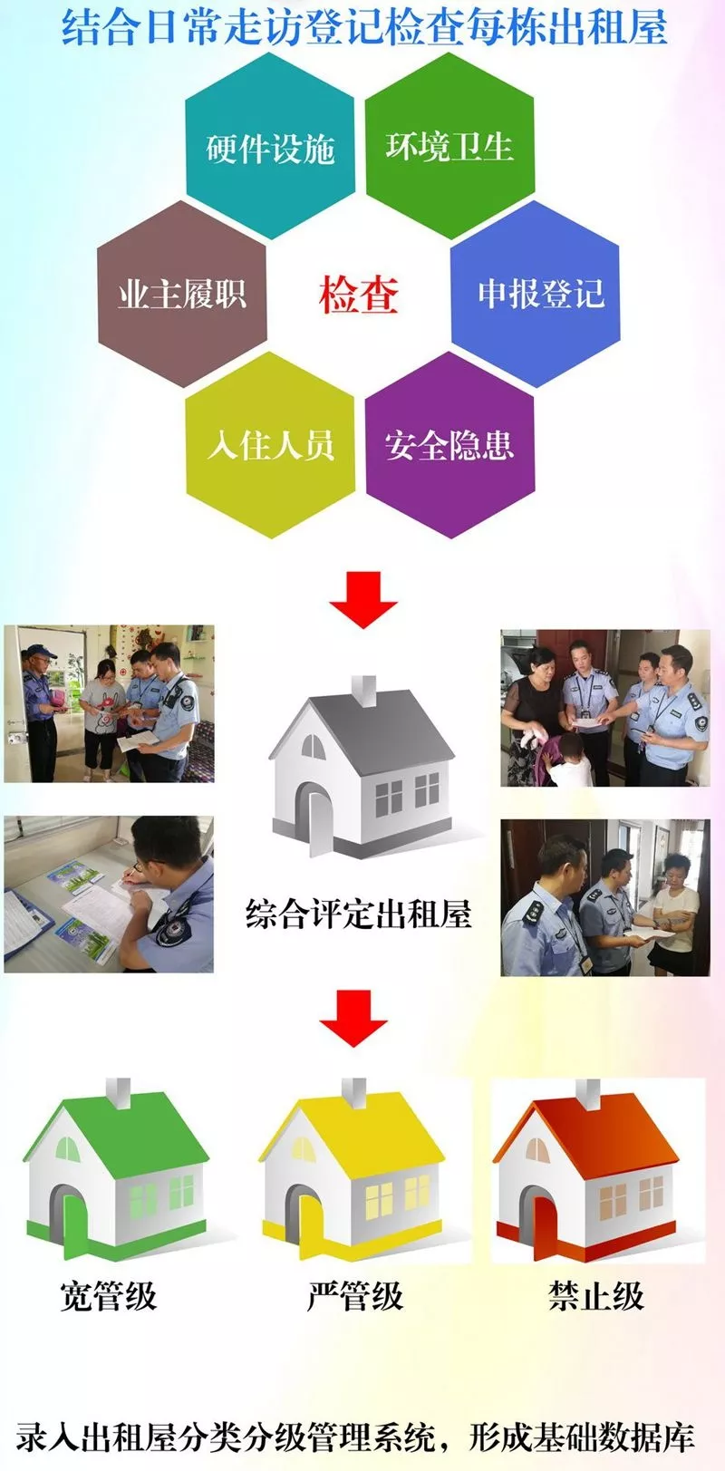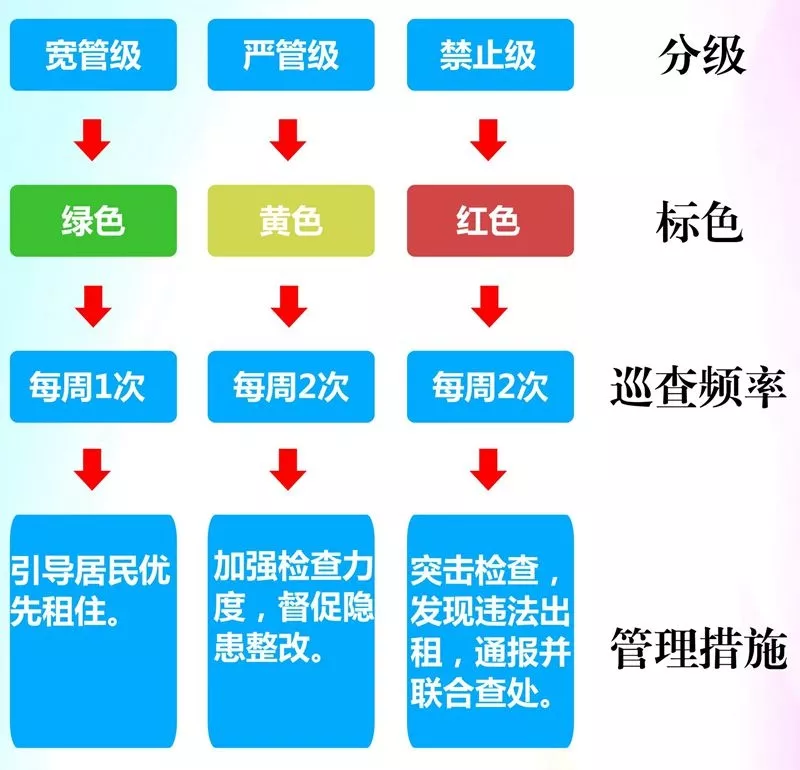 各街道在本轄區(qū)內(nèi)全面落實(shí)出租屋分類分級(jí)管理,區(qū)工作領(lǐng)導(dǎo)小組在各街道完成后開展全面驗(yàn)收。