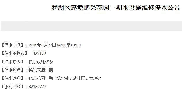 停水時(shí)間:2019年8月22日14:00至18:00