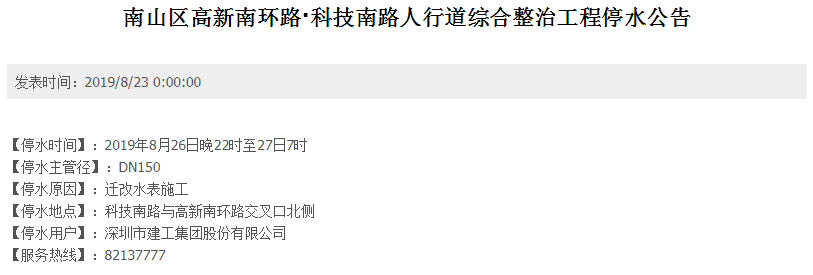 對停水公告,市民朋友如有疑問,可致電水務服務熱線82137777。