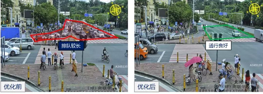 臨近放學(xué)時段,龍崗區(qū)愛南/植物園路口東面車輛增多,存在擁堵情況,深圳交警立即步伐保持該路口,增加?xùn)|面放行時間,15分鐘后路口恢復(fù)正常。