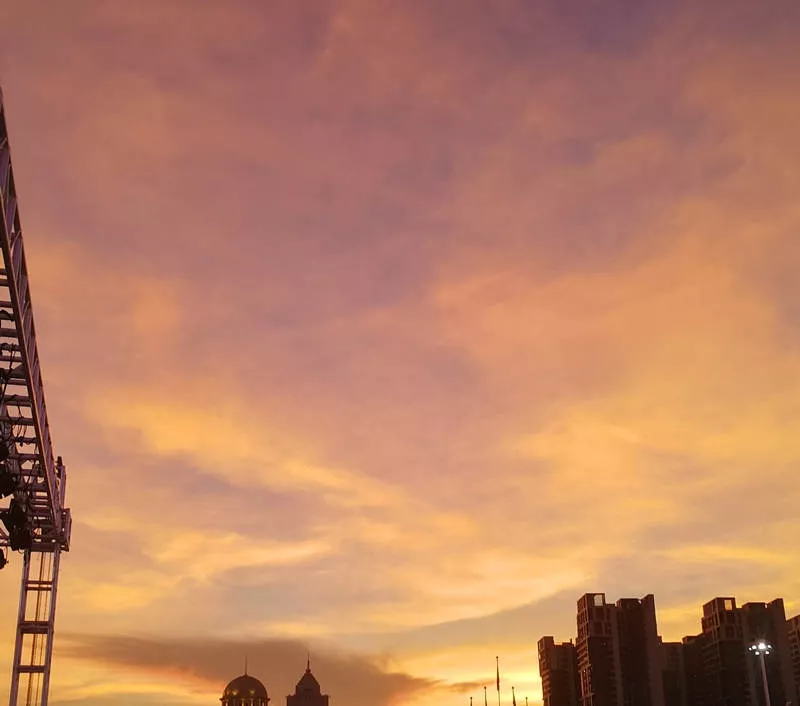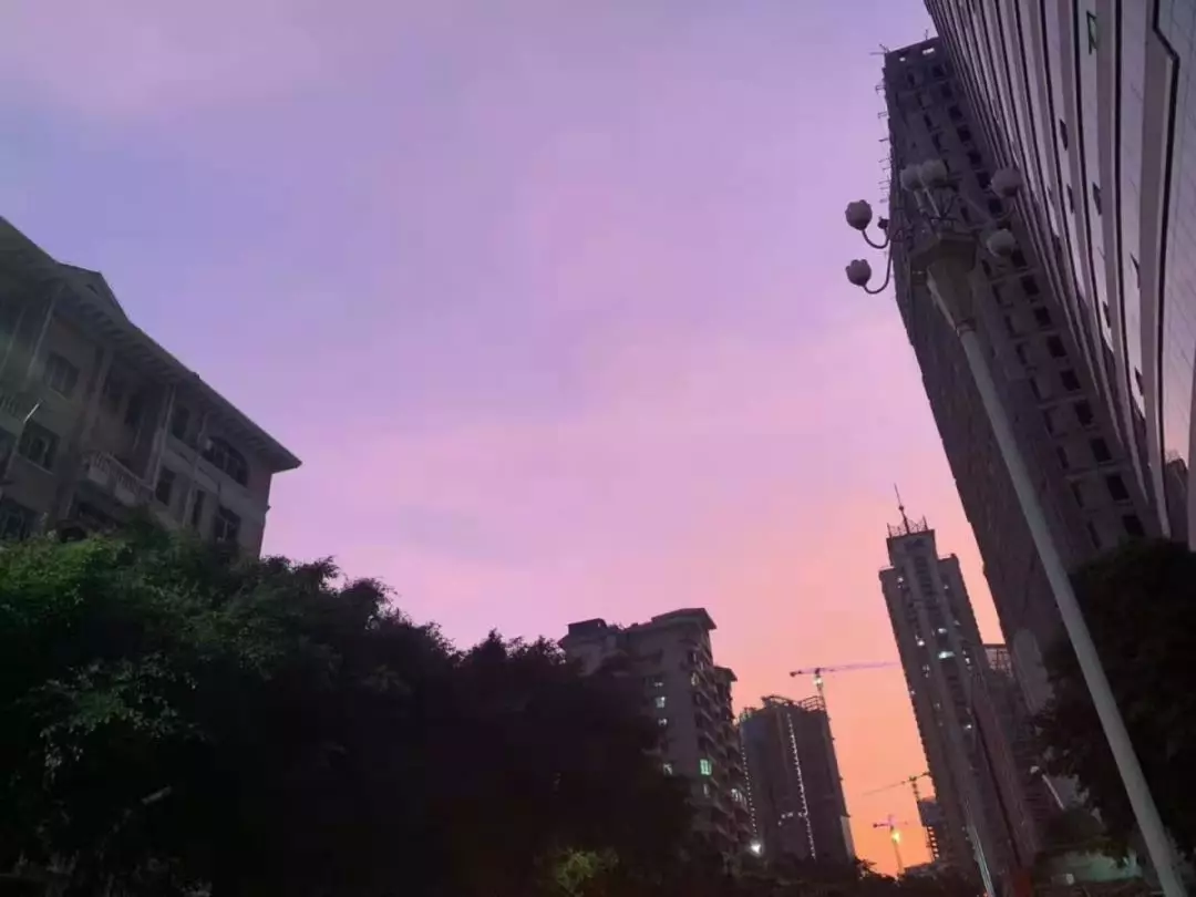 #深圳晚霞#應該就是在氣象上所說的臺風來臨前的“反暮光”。它一般在臺風來襲前一兩天的日落時分出現(xiàn),西方地平線下發(fā)出數(shù)條放射狀、紅藍相間的光芒,發(fā)射到天頂,然后收斂于東方與太陽對稱的地方,映紅整個天空。