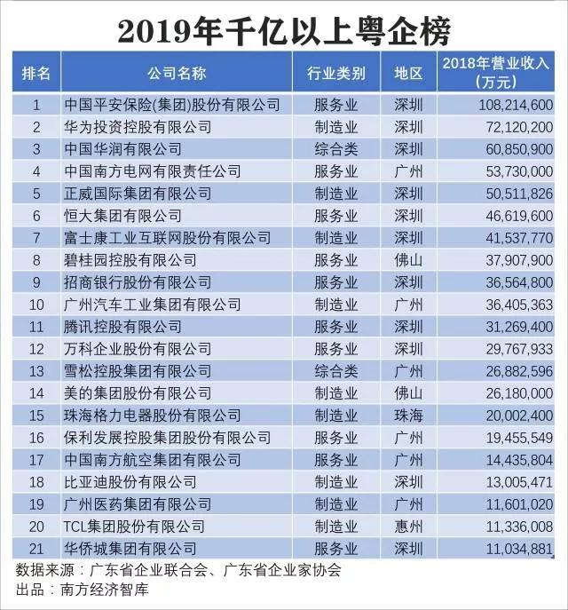2019廣東企業(yè)500強榜單!