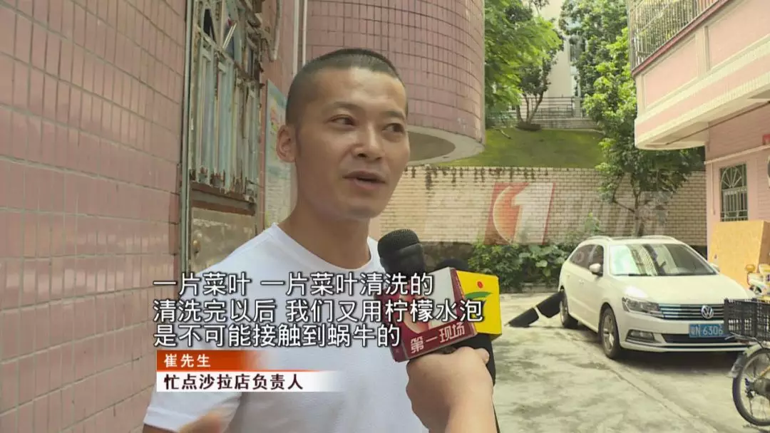 今天上午,辛女士也向記者展示了那份吃剩的沙拉,蝸牛依舊在蔬菜里頭蠕動。辛女士認為,一定是蔬菜沒有徹底清洗干凈,才會出現這樣的情況。