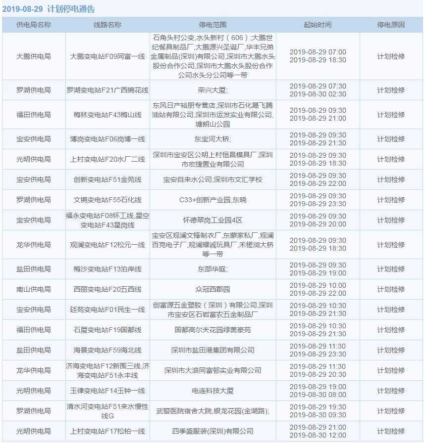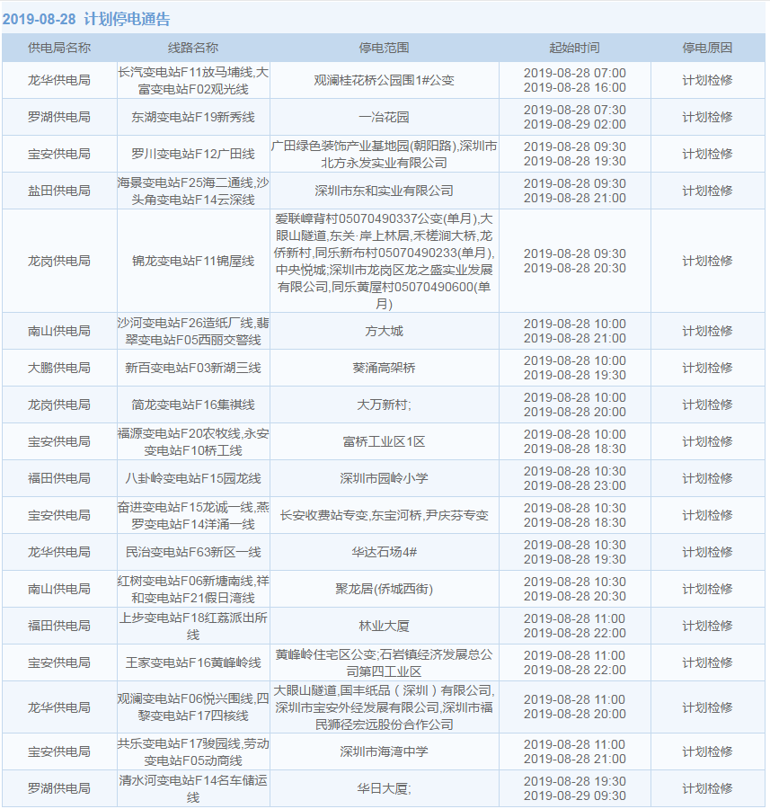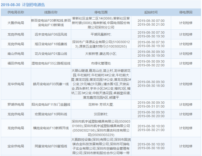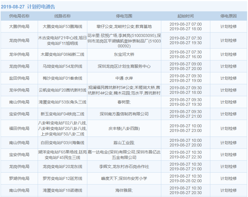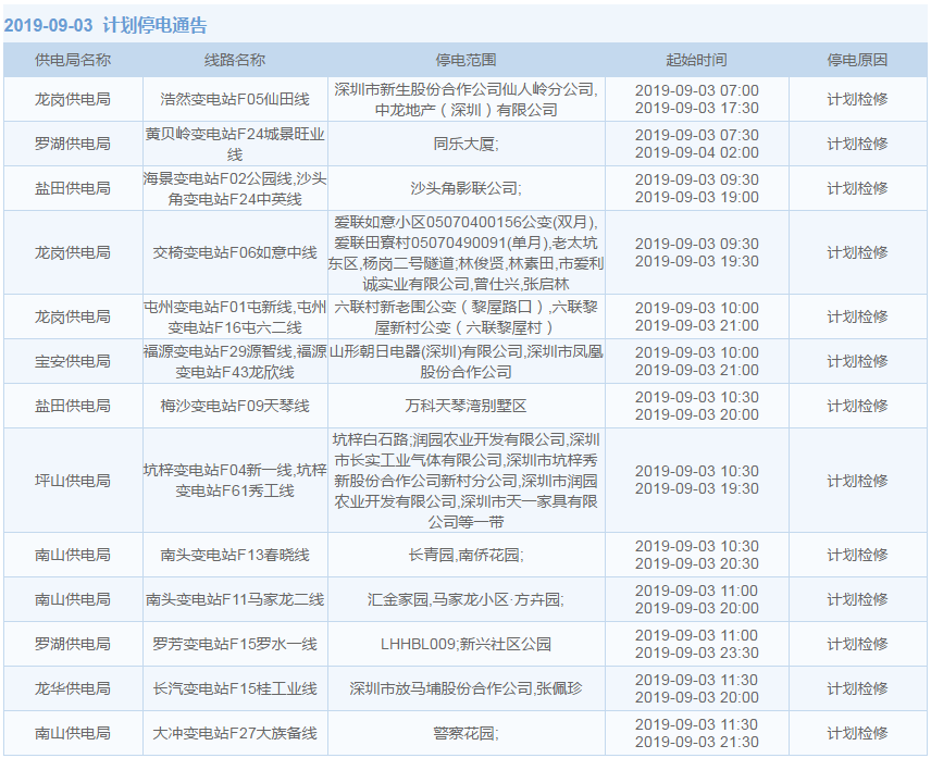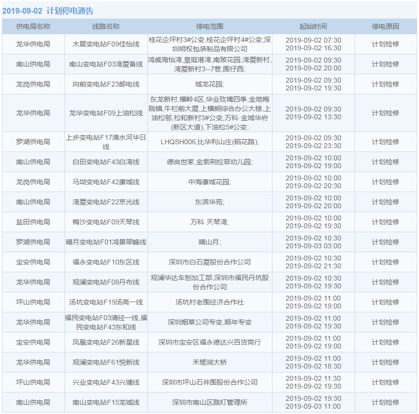 8月27日至9月12日,深圳這些地方停電!快看影響你家沒