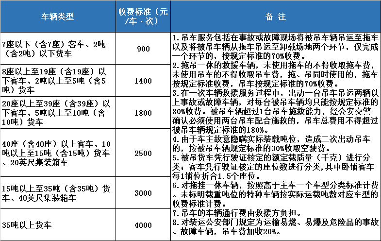 廣東省高速公路吊車(chē)服務(wù)收費(fèi)標(biāo)準(zhǔn)見(jiàn)下表: