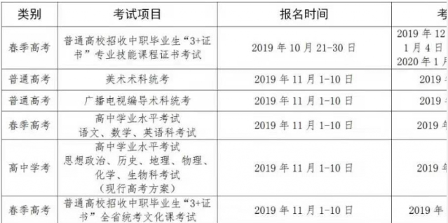 1.第一次報名時間為2019年12月1—6日;考試時間為2020年1月6日,考試科目為歷史、地理、化學和生物學等4門的合格性考試。