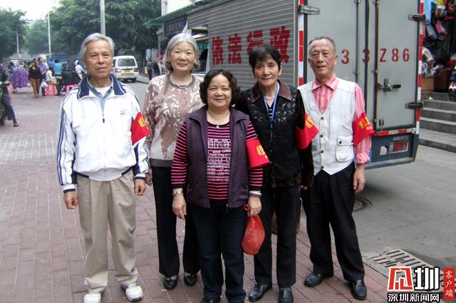 張明義組織轄區(qū)老年人開展市容秩序義務(wù)巡查(右一)
