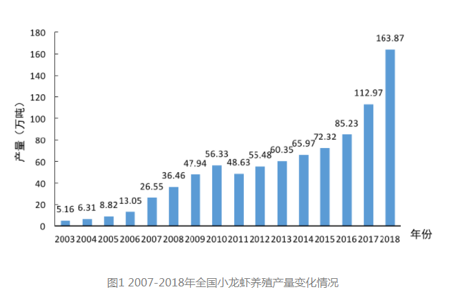 隨著生活水平的提高,人們對“食”提出了更高要求,色香味俱全的美食往往也更讓人難以抗拒?;疱仧拘↓埼r作為當(dāng)代青年人的“最愛”,已獨(dú)得恩寵許多年,尤其是小龍蝦。每年夏季,是吃小龍蝦的旺季。據(jù)部分媒體不完全統(tǒng)計,光南京一個城市每年的龍蝦消費(fèi)量都超萬噸,而北上廣深蓉5個城市,小龍蝦門店數(shù)均超3000家。此外,據(jù)2019年中國小龍蝦產(chǎn)業(yè)發(fā)展報告顯示,小龍蝦產(chǎn)業(yè)總產(chǎn)值達(dá)3690億元,占據(jù)了第三產(chǎn)業(yè)產(chǎn)值的主導(dǎo)地位。這種巨大的消費(fèi)力帶動了小龍蝦養(yǎng)殖業(yè)的發(fā)展,到2018年,全國小龍蝦養(yǎng)殖產(chǎn)量已超163萬噸。