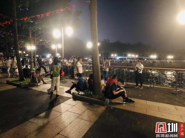 10月1日晚上9:00,看完焰火表演的市民仍不愿離去,想要留下來看今日最后一場燈光秀。