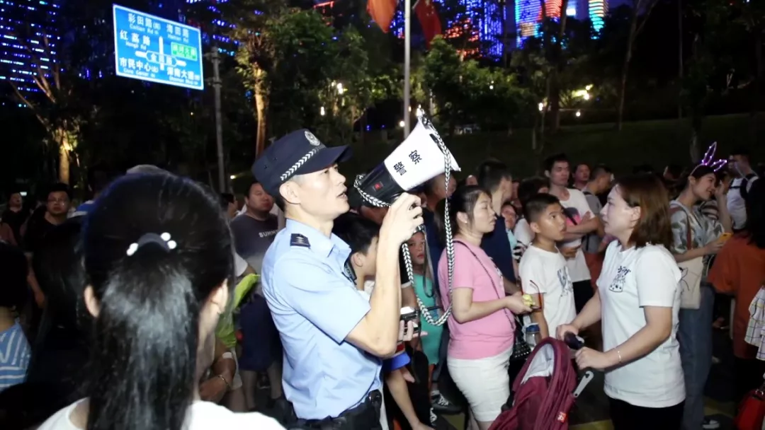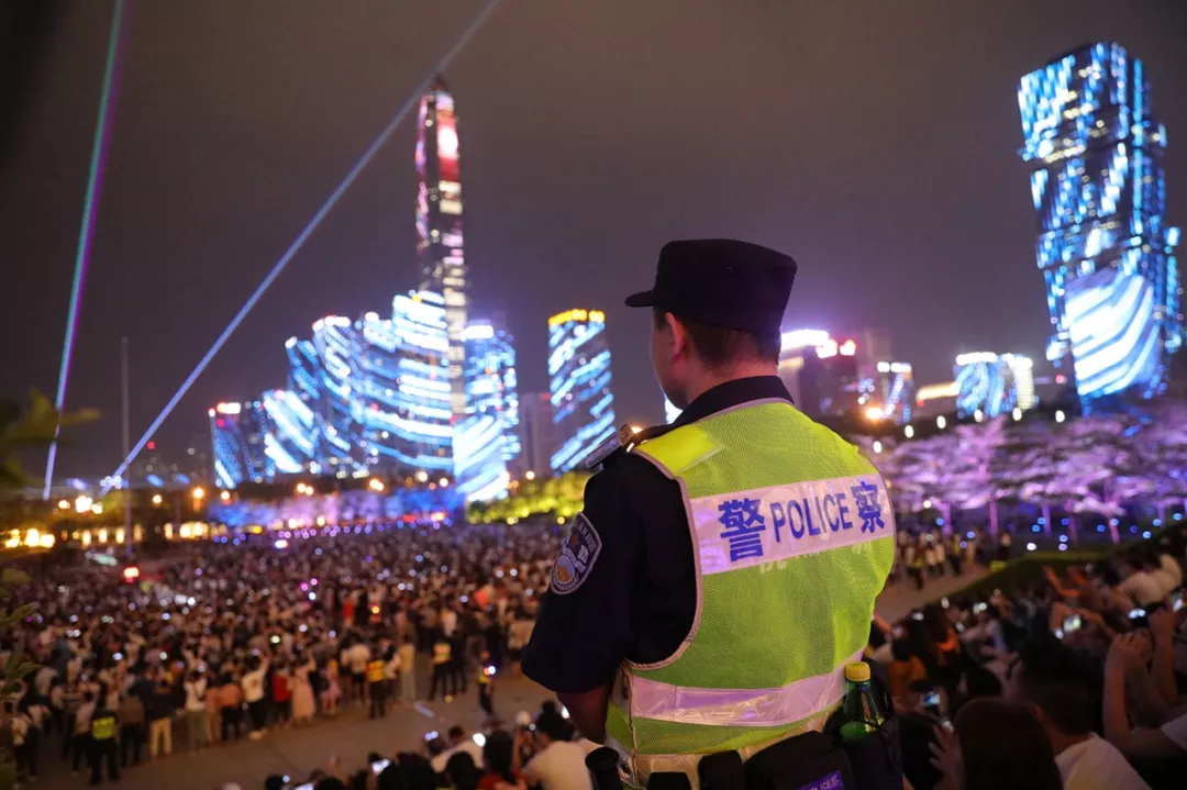 此外,福田公安分局根據(jù)市民中心和蓮花山頂廣場(chǎng)的每日人流負(fù)荷情況實(shí)時(shí)調(diào)整,及時(shí)協(xié)調(diào)城管調(diào)控?zé)艄庑悴コ鰰r(shí)間并加演,避免人流停滯,緩解疏導(dǎo)壓力。值得一提的是,為了方便市民夜間行走,觀賞區(qū)特地“開(kāi)辟”了幾條新的應(yīng)急道路,并在所有“黑暗死角”都加裝了應(yīng)急燈。福田公安分局指揮處處長(zhǎng)張保軍表示:“在安保警力多次實(shí)地巡查后,及時(shí)發(fā)現(xiàn)問(wèn)題并整改、疏通光線不足及堵塞人群的道路,使市民們?cè)谟^看完燈光秀后能夠更加安全、快捷地離開(kāi)?!背艘酝猓谌肆髅芗臒艄庑悻F(xiàn)場(chǎng),孩童走失、物品遺失的情況也有發(fā)生,安保人員不斷地通過(guò)廣播尋人、尋物,進(jìn)行實(shí)名登記,盡心盡力地為市民、游客解決切身難題。