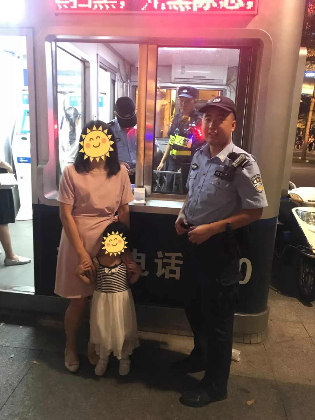 近日,深圳市公安局福田分局蓮花派出所輔警張日平、文應云在燈光秀觀賞現(xiàn)場周邊巡邏時,發(fā)現(xiàn)一名3歲的小女孩走失,通過發(fā)動群防群治力量共同查找,聯(lián)系上小女孩的家長前來書城警銀亭,經(jīng)核實身份信息無誤后,讓其接回小女孩。