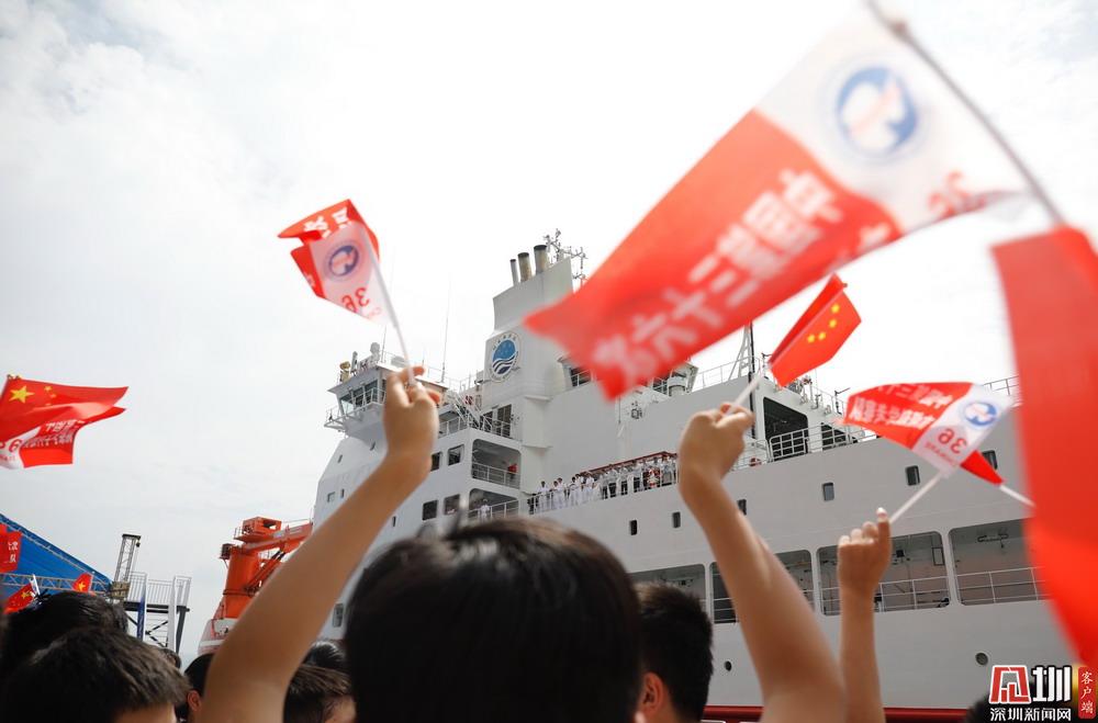 當(dāng)天下午,近百名市民、學(xué)生及各市直部門(mén)和中央駐深涉海部門(mén)代表看到“雪龍2”號(hào)船靠泊碼頭,發(fā)出熱烈的歡呼聲,他們揮舞著手中的紅旗熱烈歡迎“雪龍2”號(hào)科考船及國(guó)家第36次南極考察隊(duì)抵達(dá)深圳。當(dāng)船舶靠穩(wěn)并架設(shè)好舷梯后,深圳市政府副市長(zhǎng)、黨組成員黃敏等領(lǐng)導(dǎo)攜兩位少先隊(duì)員迎接考察隊(duì)代表,并獻(xiàn)花握手致意,表達(dá)誠(chéng)摯的歡迎和衷心的祝福。