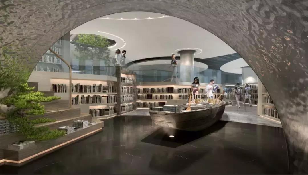 書(shū)城的主題空間設(shè)計(jì)將中國(guó)傳統(tǒng)文化元素與現(xiàn)代時(shí)尚藝術(shù)融合,既根植傳統(tǒng)文化揚(yáng)文人風(fēng)骨,又吸納現(xiàn)代時(shí)尚顯高端大氣。