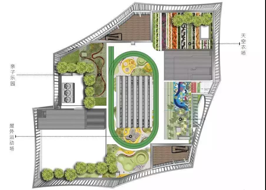 屋頂農(nóng)場(chǎng)充分利用空間,打造天空農(nóng)場(chǎng)、親子樂(lè)園、屋外運(yùn)動(dòng)場(chǎng)??罩械呐艿溃饰值耐寥?,瓜果蔬菜的金色豐收,讓自然在城市落地生根。小朋友們可以在其中,種植汗水,開(kāi)花結(jié)果,收獲自然的饋贈(zèng)。