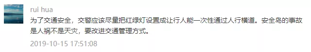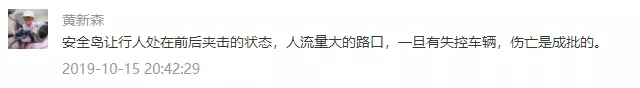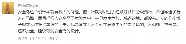 安全島絕對安全么,顯然不是。事實上,設置安全島的初衷是為了提升行人過街效率和道路利用率,它是適應越來越寬的城市道路,在行人與車之間尋求通行效率最大化的產(chǎn)物。以10月15日的車禍為例,面對動能巨大的奔馳越野車,哪怕是修一堵高墻恐怕也難阻擋。因此,所謂安全島,只能做到相對安全,而非不可逾越的屏障。