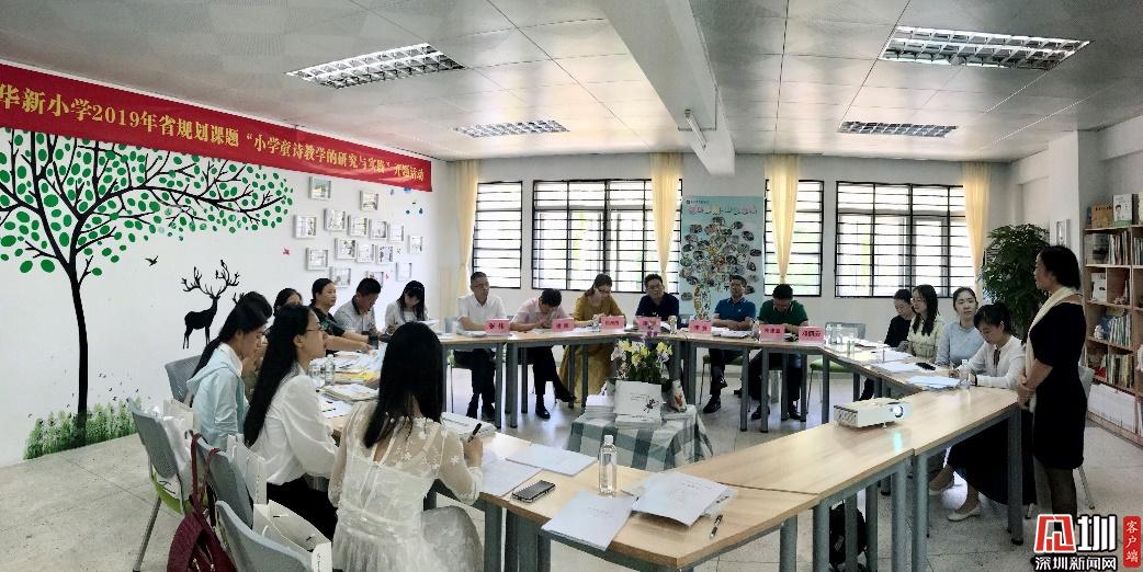 深圳市教育科學研究院副院長、研究員潘希武博士后,深圳市教育科學研究院科研管理辦副教研員李賢博士,深圳市福田區(qū)教育科學研究院研究員呂慶燕博士,深圳市學生文聯(lián)秘書長、深圳市福田區(qū)教學研究員謝晨,知名詩人、中國詩歌學會會員、廣東省作家協(xié)會會員朱建業(yè),華新小學張偉校長,童詩課題主持人、華新小學課程部主任鄧麗云,以及來自深圳市南山區(qū)、福田區(qū)7所學校的課題組成員們,出席了開題活動。