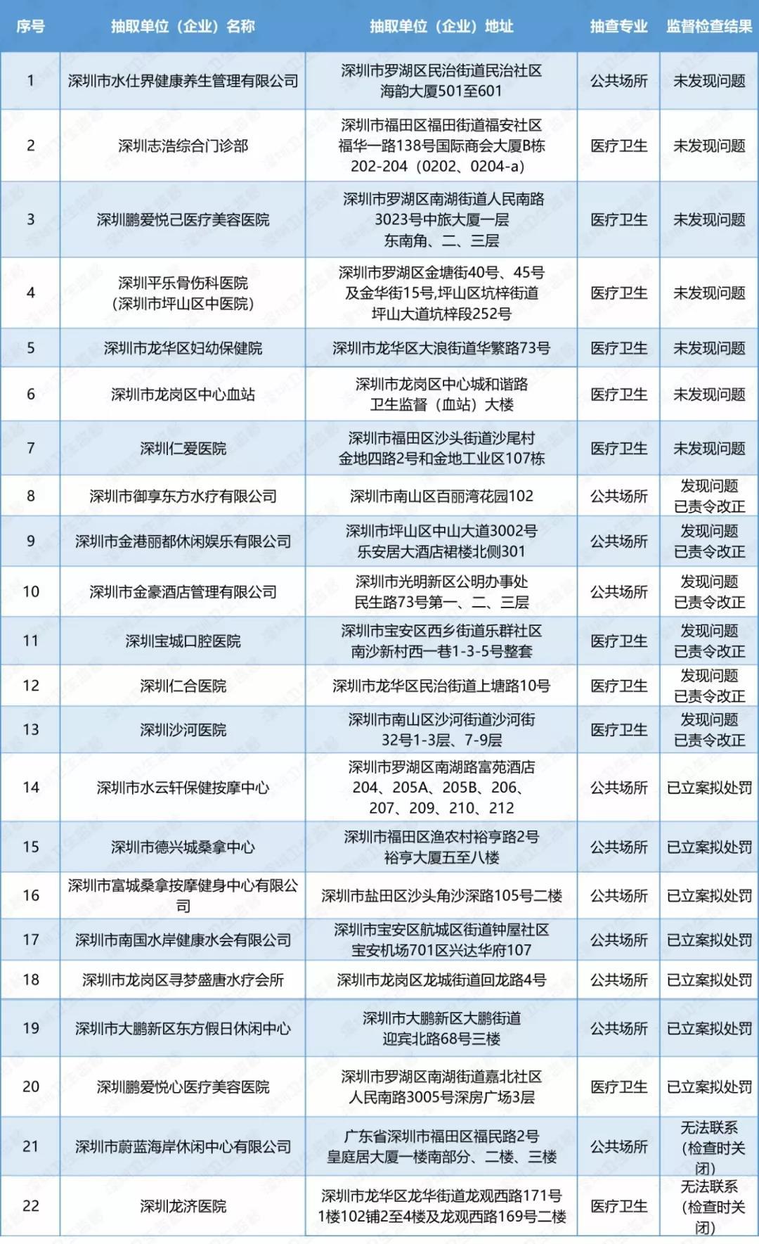 曝光!深圳9月雙隨機(jī)抽查,這7家公共場所和醫(yī)療機(jī)構(gòu)被處罰