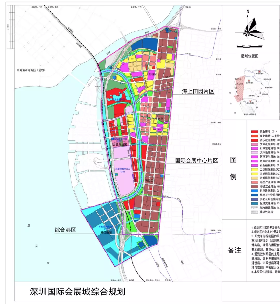 “深圳國(guó)際會(huì)展城”范圍北抵茅洲河、東至松福大道、南臨福永河、西側(cè)主要以廣深沿江高速公路為界,并包括規(guī)劃寶安綜合港區(qū),范圍共計(jì)22.57平方公里,規(guī)劃區(qū)劃分為三個(gè)片區(qū):國(guó)際會(huì)展中心片區(qū)、海上田園片區(qū)和寶安綜合港區(qū)。