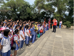 四年級全體學生邁著整齊的步伐前往赤灣煙敦。到達赤灣煙墩后,老師講解了赤灣煙墩的歷史,接著各班有序地進行了革命歌曲拉歌活動并展示了各班的才藝。學生們在小南山的習習涼風中,親身感受歷史,在心底播下愛國的種子。