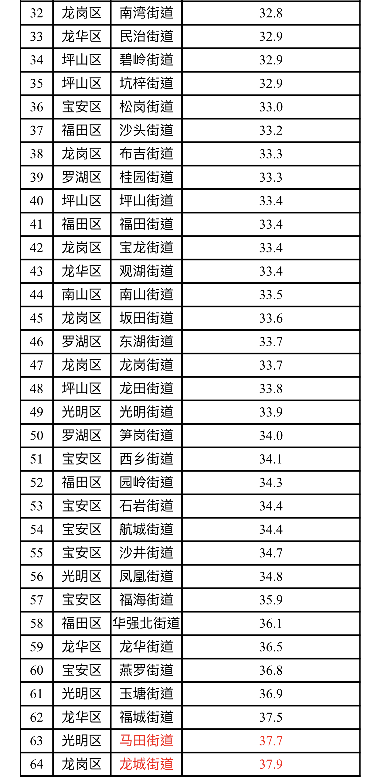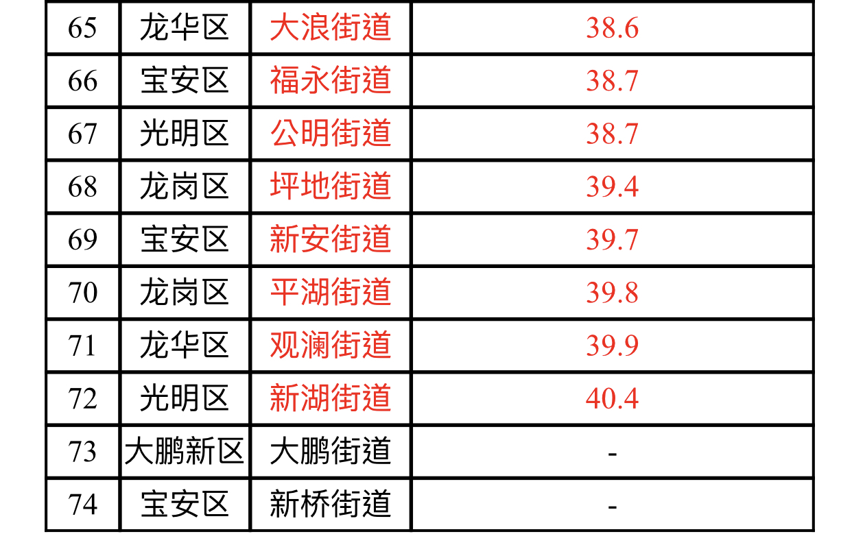見(jiàn)圳客戶(hù)端·深圳新聞網(wǎng)2019年11月5日訊(見(jiàn)圳客戶(hù)端、深圳新聞網(wǎng)記者陳婕)11月5日,記者從深圳市生態(tài)環(huán)境局了解到,2019年10月,全市74個(gè)街道PM2.5濃度在25.7-40.4微克/立方米之間,均值為33.3微克/立方米。排名前十的是:南澳、海山、桃源、橫崗、鹽田、南湖、沙頭角、蓮塘、蛇口和黃貝等街道,排名倒數(shù)前十的是:新湖、觀瀾、平湖、新安、坪地、公明、福永、大浪、龍城和馬田等街道。