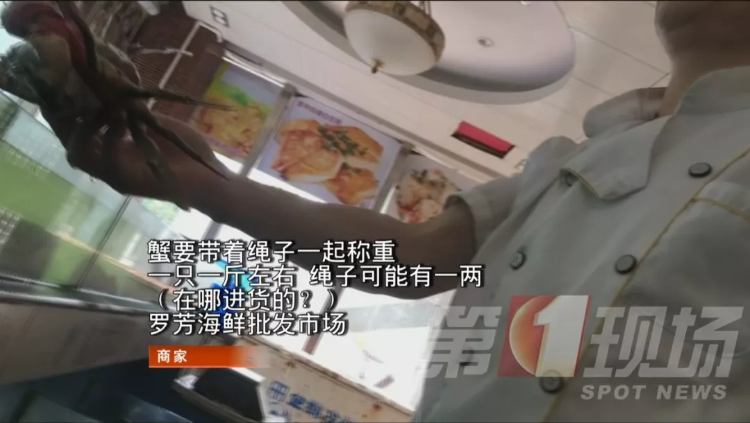 5日早上,記者走訪了羅芳水產(chǎn)批發(fā)市場(chǎng)附近的酒樓,發(fā)現(xiàn)酒樓售賣的膏蟹也是從羅芳市場(chǎng)進(jìn)的貨,不過這里的膏蟹綁繩沒那么粗。