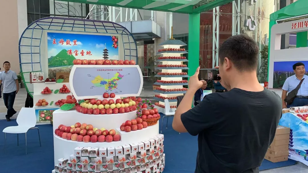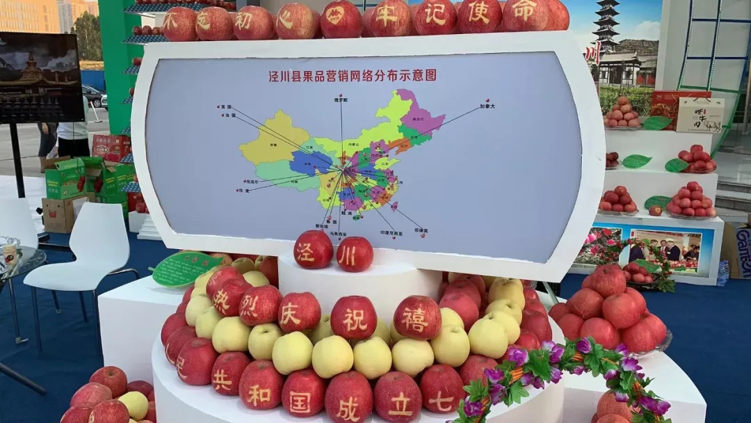 涇川縣的展位,展示了該縣果品營(yíng)銷(xiāo)網(wǎng)絡(luò)分布示意圖。