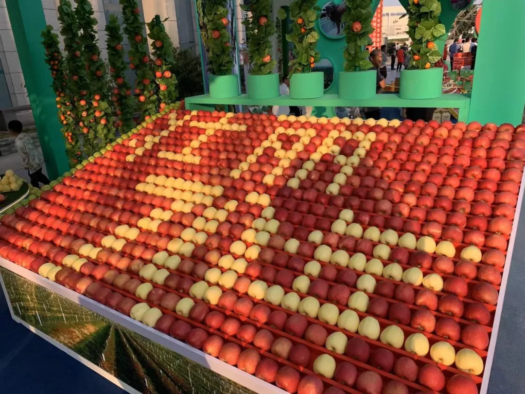 展館占地400多平方米,按縣分別布展,主打蘋(píng)果元素。