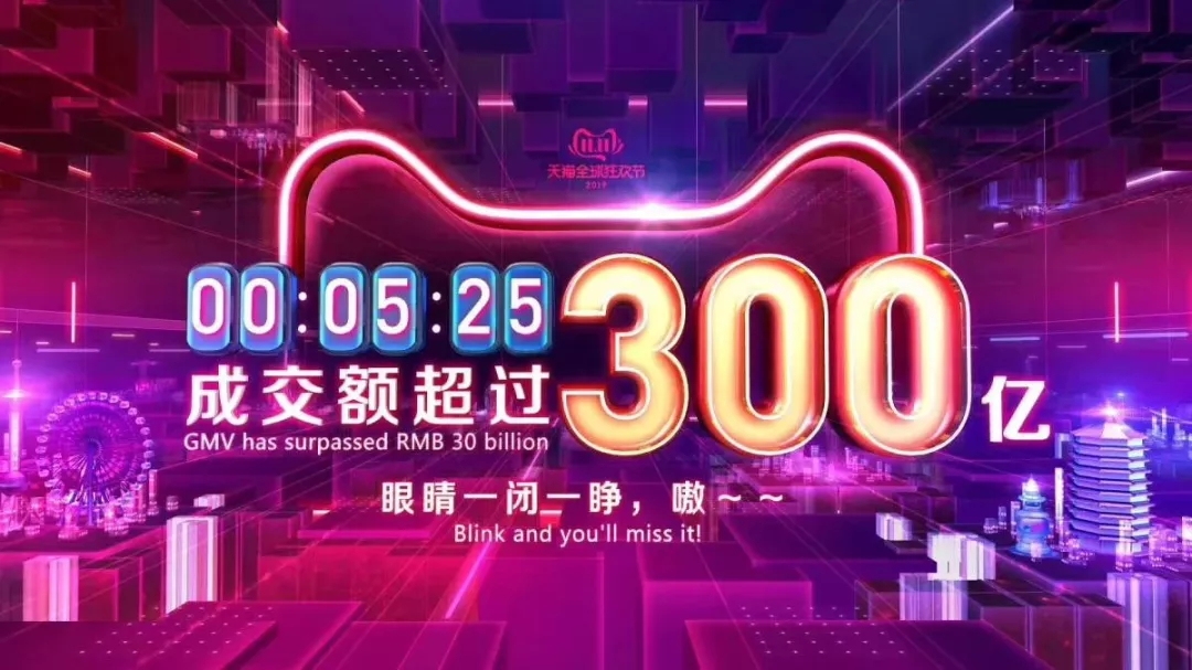 截至11日5分25秒,天貓雙十一銷售額突破300億元!