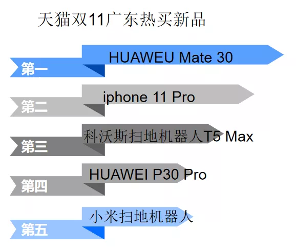 在熱賣(mài)的新品種,老廣對(duì)華為Mate 30熱情最高,其次是Iphone11 pro。值得一提的是,今年天貓雙11,蘋(píng)果官方旗艦店天貓僅用10分鐘,成交額超去年全天7倍。但是,顯然老廣對(duì)數(shù)碼產(chǎn)品有自己的看法。熱賣(mài)新品TOP5后三席分別是科沃斯掃地機(jī)器人T5 Max、華為 P30 Pro和小米掃地機(jī)器人,可見(jiàn)老廣對(duì)數(shù)碼科技產(chǎn)品比較鐘愛(ài),持家的屬性讓家居類(lèi)數(shù)碼產(chǎn)品獨(dú)受寵愛(ài)。
