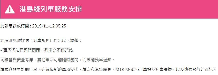 港鐵官網(wǎng)今早陸續(xù)發(fā)布其它線路列車服務(wù)調(diào)整信息,截至目前各線路情況如下: