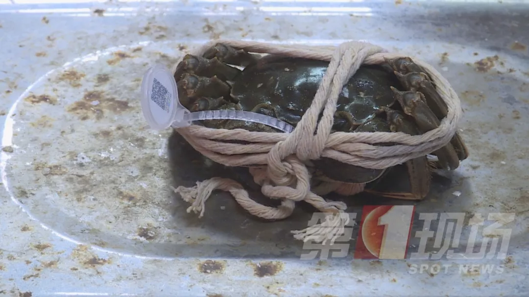 即便記者將綁蟹的繩子,浸泡在水中三分鐘后,帶著水分再次稱重,母蟹的重量也依然不足稱。
