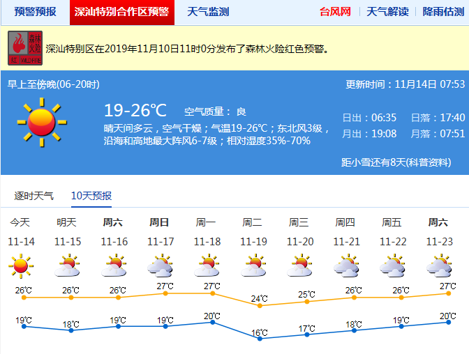 見(jiàn)圳客戶(hù)端·深圳新聞網(wǎng)2019年11月14日訊(見(jiàn)圳客戶(hù)端、深圳新聞網(wǎng)記者 陳婕)目前粵北地區(qū)已經(jīng)出現(xiàn)了“1”字開(kāi)頭的氣溫,這讓小記很期待13日晚上深圳的溫度會(huì)降多少?