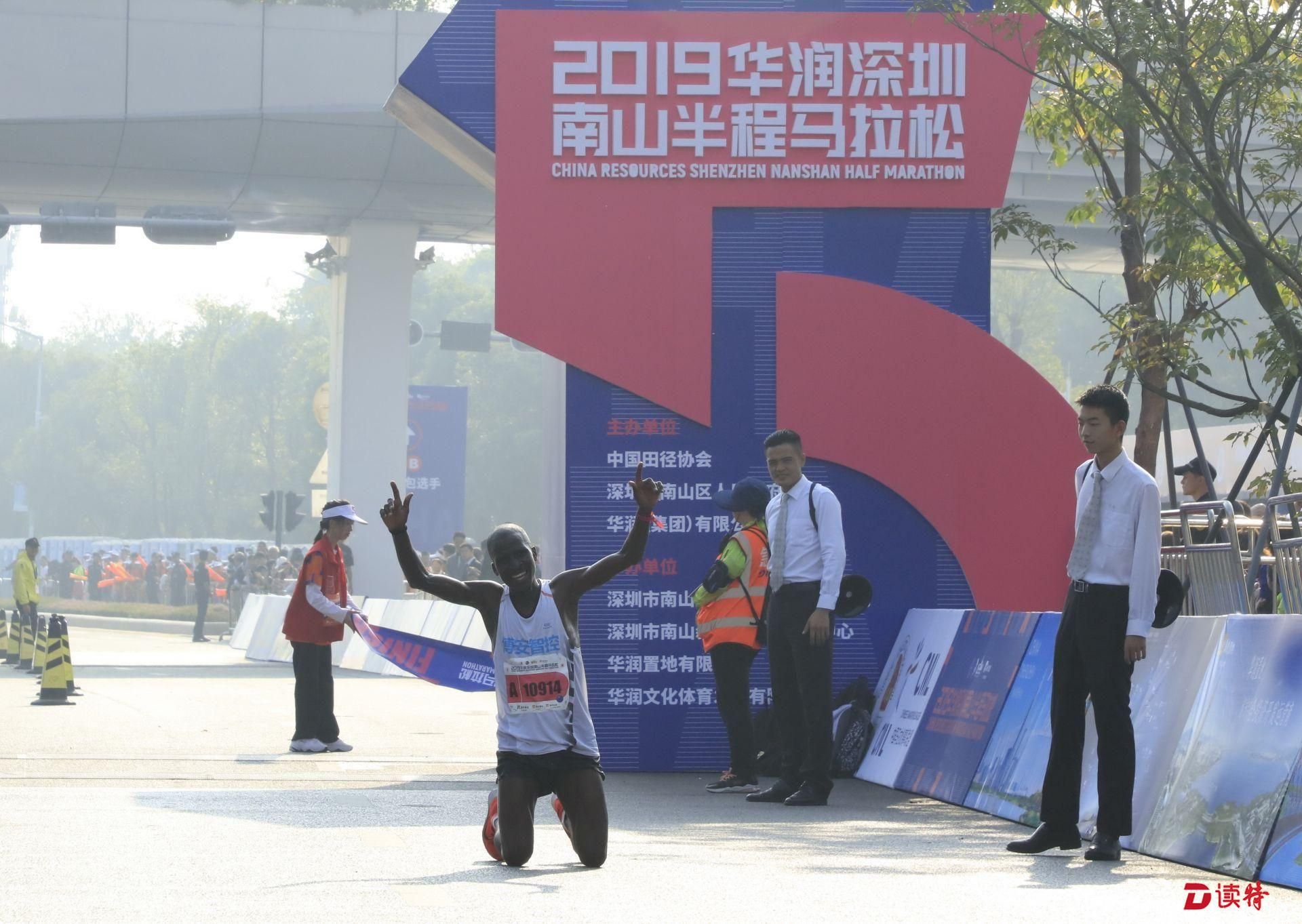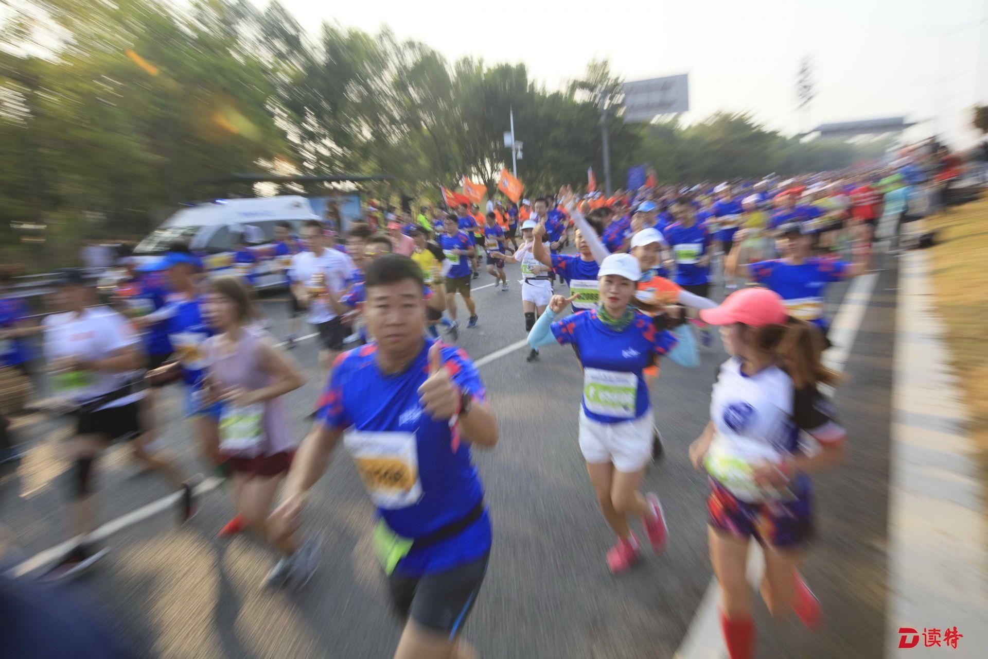 8點(diǎn)鳴槍,1.6萬(wàn)名參賽選手準(zhǔn)時(shí)開(kāi)跑,由深圳人才公園東門出發(fā),途徑南山區(qū)多個(gè)地標(biāo)建筑,向終點(diǎn)華潤(rùn)深圳灣體育中心奔跑。經(jīng)過(guò)一番激烈的角逐,9點(diǎn)過(guò),有選手率先抵達(dá)終點(diǎn),男女組冠亞季軍陸續(xù)誕生。