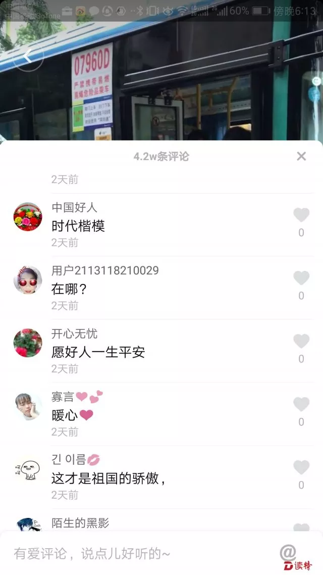 暴雨中,一輛深圳公交車被湍急的水流圍困,為了安全轉(zhuǎn)移車上的乘客,司機冒雨到附近找來兩塊木板,在站臺和公交車間搭起一座“木橋”,車上乘客沿著“木橋”被攙扶著一個個安全地撤離。而這一幕,被乘客拍成短視頻發(fā)到抖音,短短一星期,播放量達400多萬,獲得點贊254萬,評論多達4萬多條,成為抖音上最火爆的“深圳好聲音”之一。