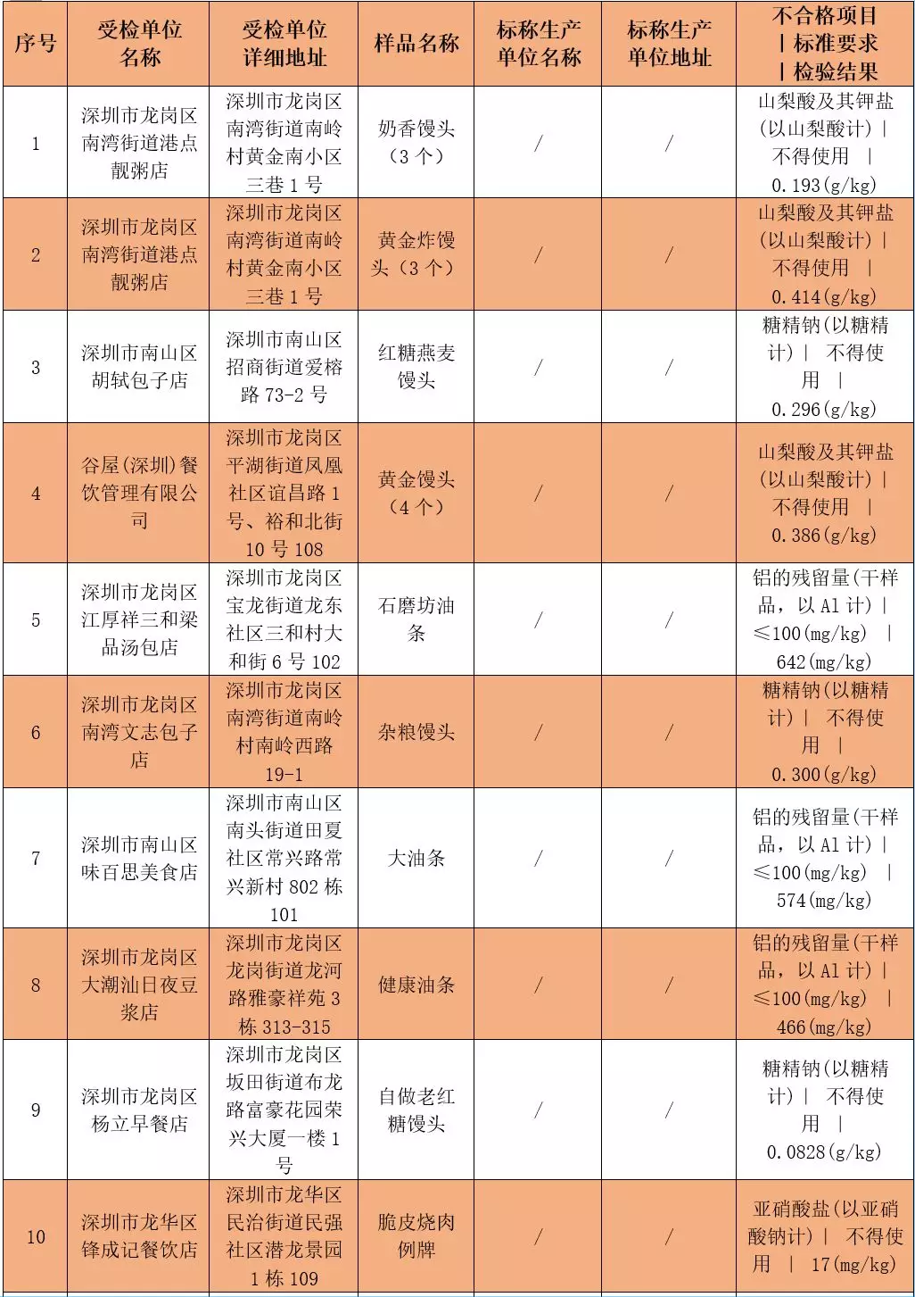另有2批次油條不合格,不合格項(xiàng)目為鋁的殘留量,分別是: