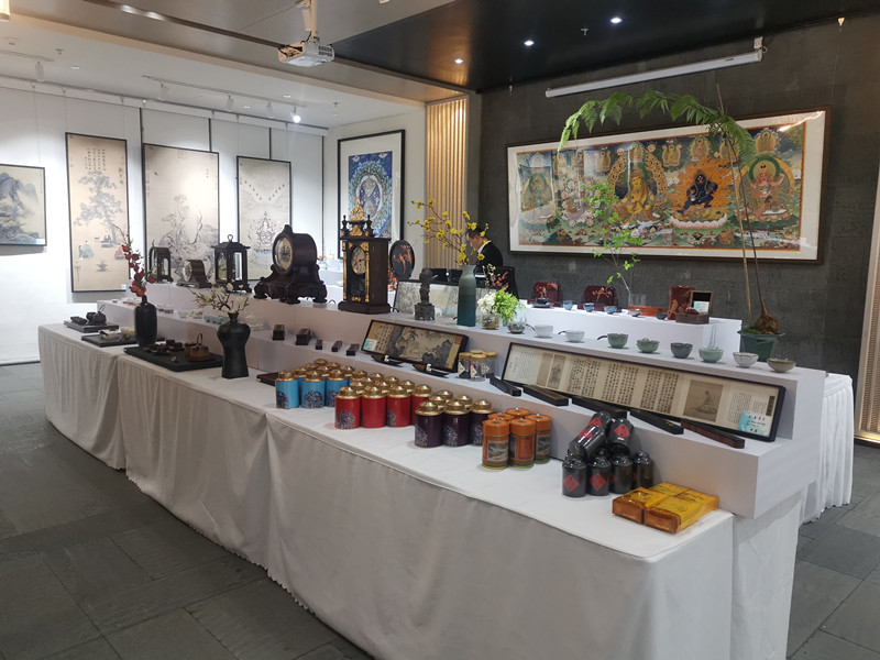 此外,本次的唐卡藝術展展出了唐卡精品卷軸掛畫30余件,唐卡被稱為藏族的”百科全書”,也是中華民族民間藝術中彌足珍貴的非物質文化遺產?,F場還同時展出唐卡繪制的各類工具原材料、藝術藏品,讓觀眾在現場近距離感受到其獨特的民族藝術魅力。