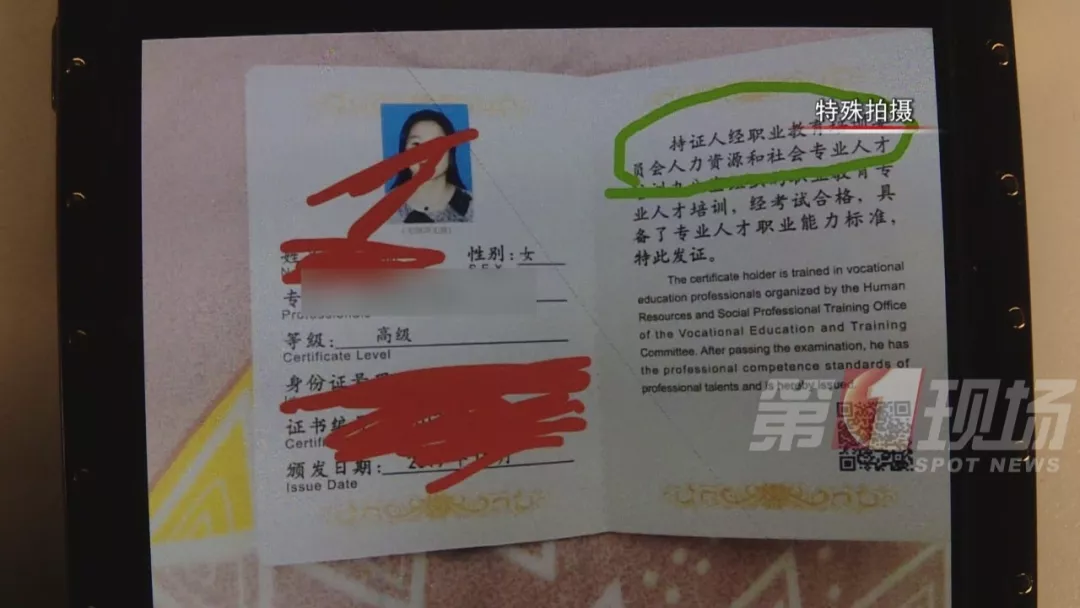 在詢問證書是哪里頒發(fā)時(shí),工作人員說,國(guó)內(nèi)其他城市這類證書分初級(jí)中級(jí)高級(jí),要分別交錢考,她們一步到位,直接發(fā)高級(jí)證書,全國(guó)通用。