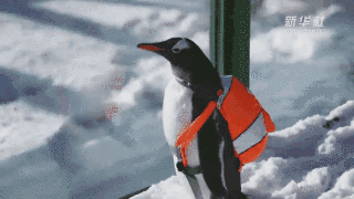 小企鵝背著書包特別興奮,目不轉(zhuǎn)睛地盯著國寶,敲治愈的!