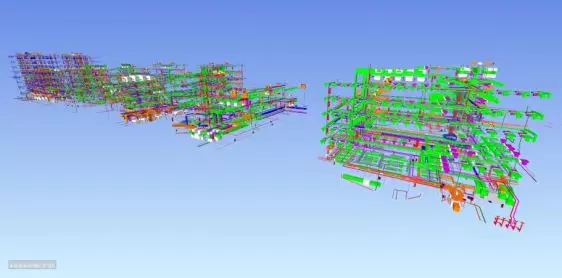 在施工準(zhǔn)備階段,優(yōu)化原設(shè)計圖紙,提前解決施工階段遇到的問題,實現(xiàn)BIM深化圖指導(dǎo)現(xiàn)場施工放樣及管道安裝,滿足規(guī)范及空間使用要求;施工實施階段,基于BIM深化模型輸出工程量清單,輔助材料管理人員物資采購管理,支架深化及輸出加工圖,推進(jìn)項目精細(xì)化管理。