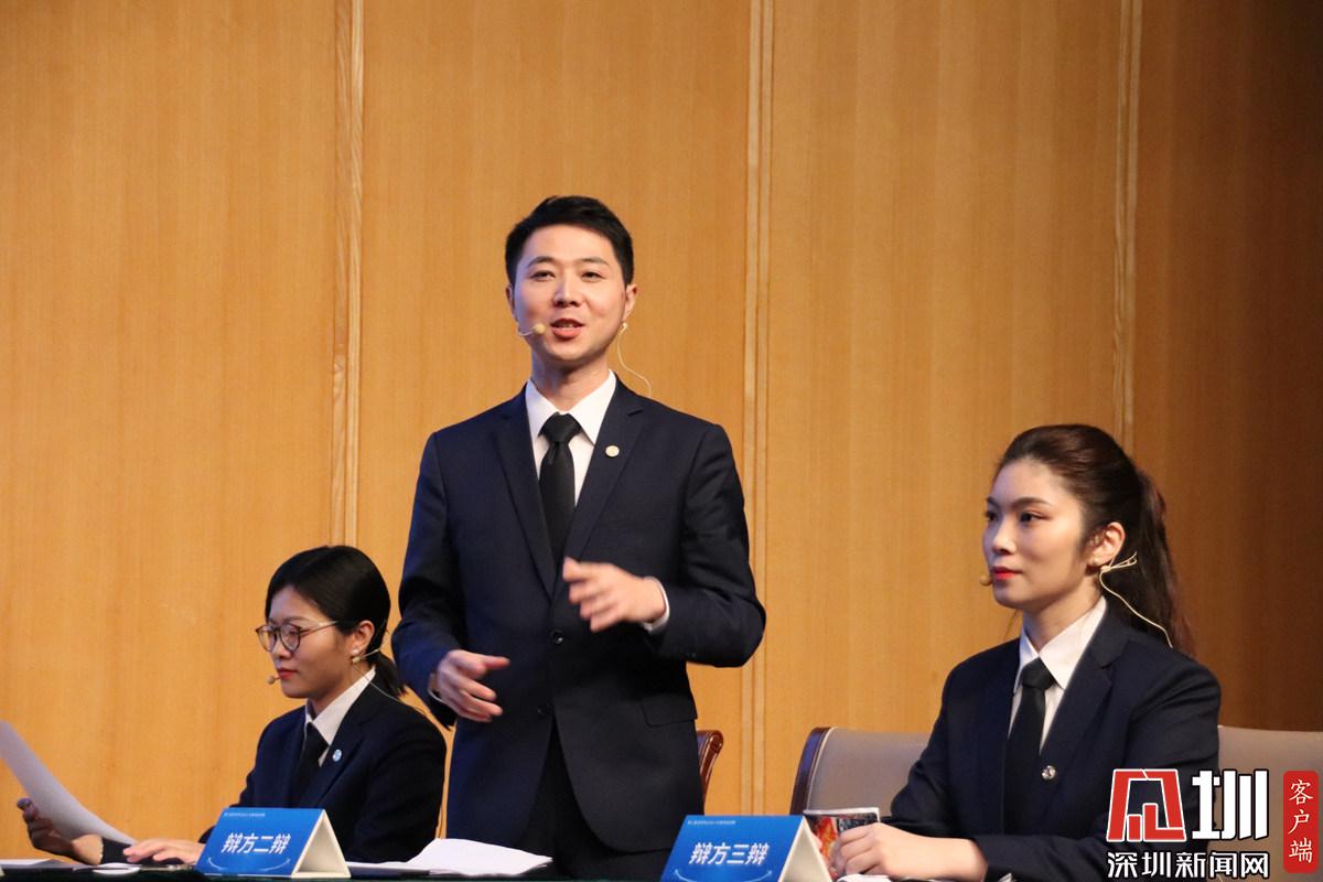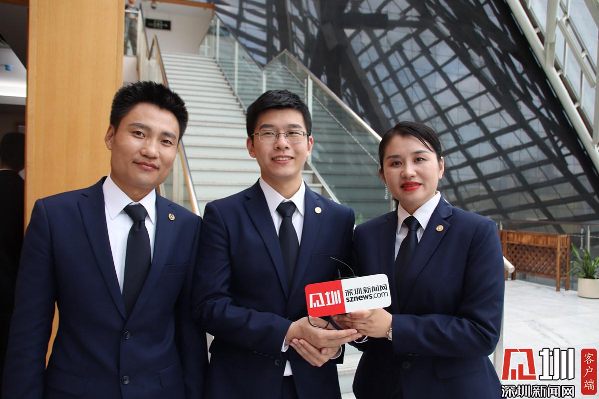 第一個辯題結束后,辯方辯手接受深圳新聞網(wǎng)記者采訪。從左到右依次為卜祥波、李銳杰、艾青三位律師。