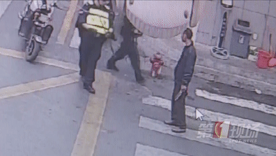 當(dāng)時(shí),就在離園門口大概15米的距離,一個(gè)醉酒的男子,手拿兩把菜刀,在這里徘徊了一會(huì),當(dāng)時(shí)朝我們校門口看了一下,看到我們校門口有兩名校衛(wèi)站在那里馬上他就慢慢往前方移動(dòng)。