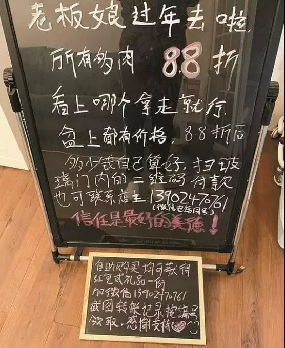 2019年春節(jié)期間,一位花店老板娘過(guò)年回家時(shí),把幾百盆植物擺在門(mén)口,并放置了價(jià)格牌和二維碼。