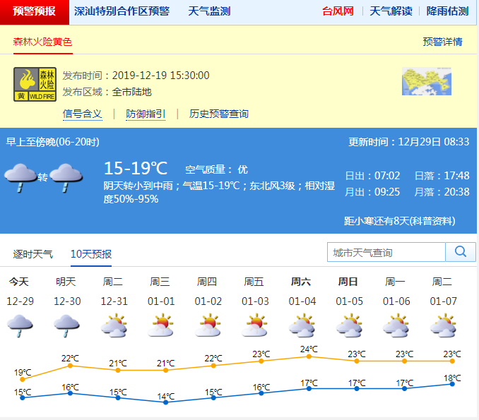 見圳客戶端·深圳新聞網(wǎng)2019年12月29日訊 大雨和冷空氣在年底前在深圳最后一次沖業(yè)績來了!據(jù)深圳市氣象臺29日凌晨4:57發(fā)布的最新預報,今天周日有中到大雨,伴有零散雷暴,氣溫也將是近幾天的最低,為15-19℃。