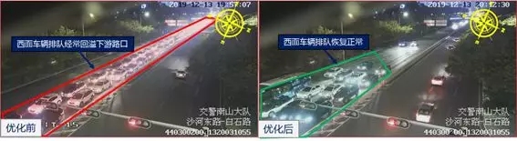 沙河?xùn)|/白石路口夜間信號(hào)燈優(yōu)化前后對(duì)比