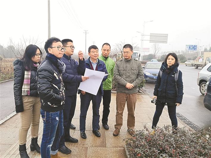 2017年12月蔡明(左四)在武漢高新大道現(xiàn)場查看工程進(jìn)度。